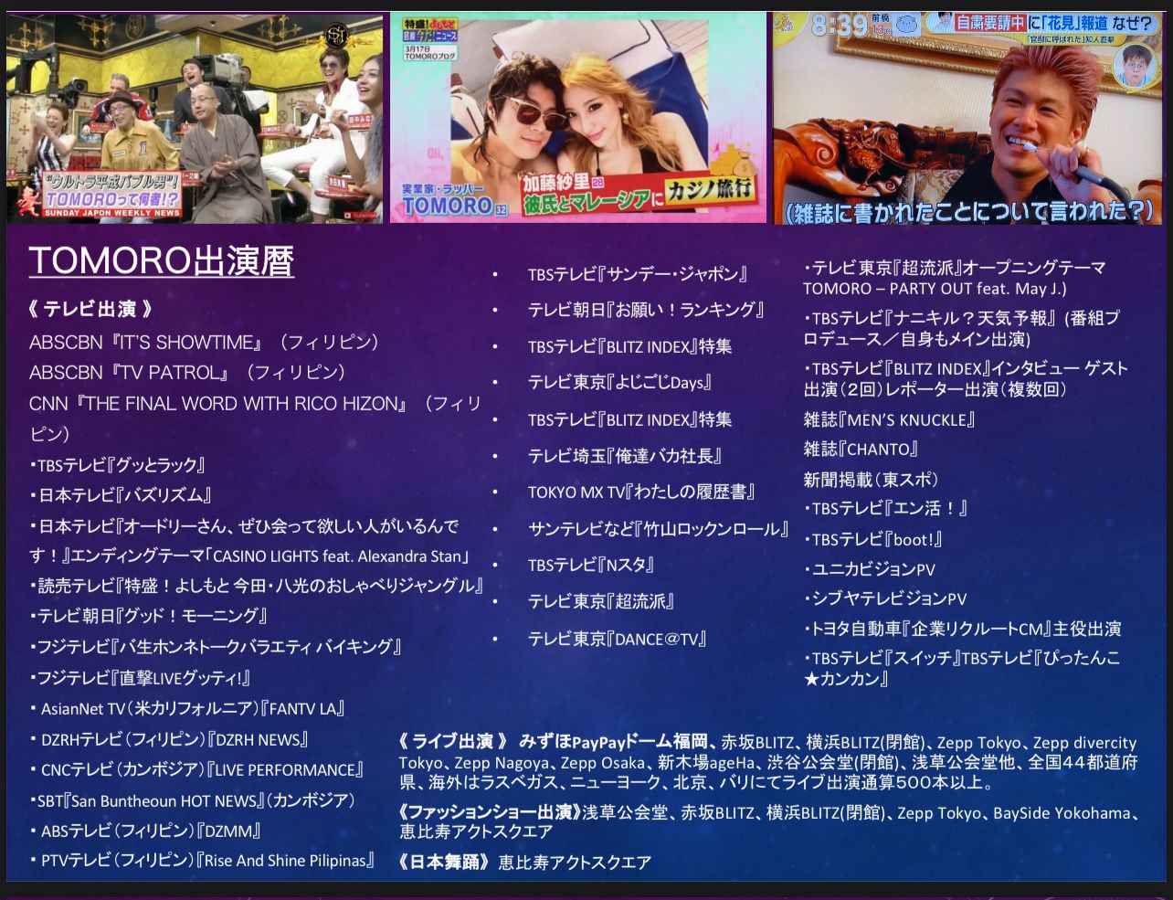 2021年、日本人アーティストで、リアルに初めてビルボード第1位を獲得したTOMOROの過去(15歳〜18歳)、プロ野球選手に成る夢を諦めて日本人ラッパーとして世界の頂点に立つという夢に向かって走り出した、TOMOROの24年前から21年前を描写したドキュメンタリー有りの映画。Netflixにて世界配信予定!!有名人多数出演決定!!話題作間違いなし!!